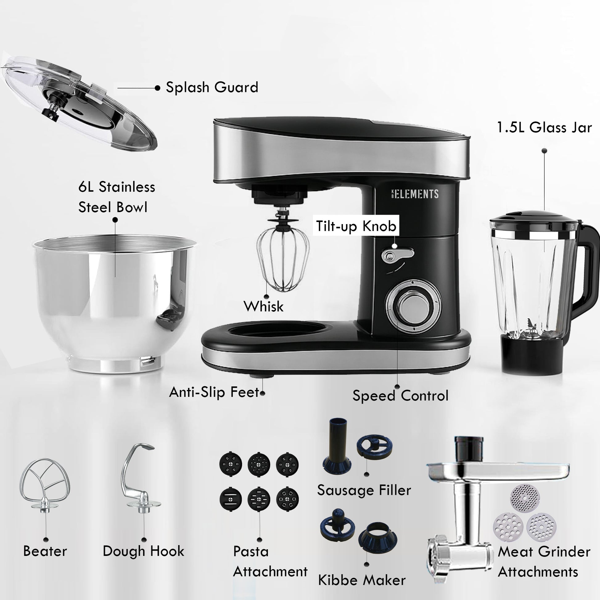 KB ELEMENTS STAINLESS STEEL STAND MIXER 7.5 LITERS